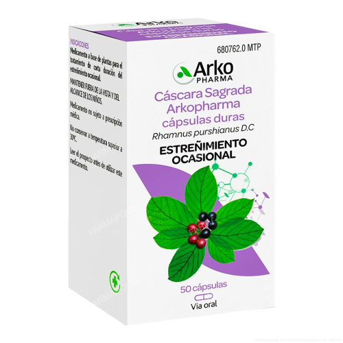 Arkocápsulas cáscara sagrada es un laxante de venta libre para aliviar el estreñimiento ocasional.