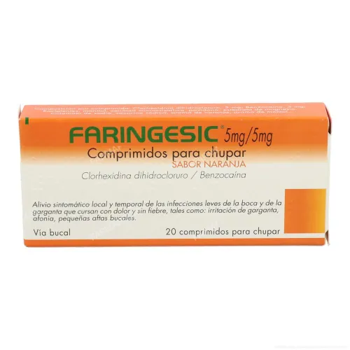 Faringesic tiene un antiséptico por lo que sirve para reducir la proliferación de bacterias patógenas en la garganta para así calmar las infecciones bucales o de garganta lo antes posible. Evita que la infección pueda ir a más a la vez que suaviza la garganta para calmar las molestias.