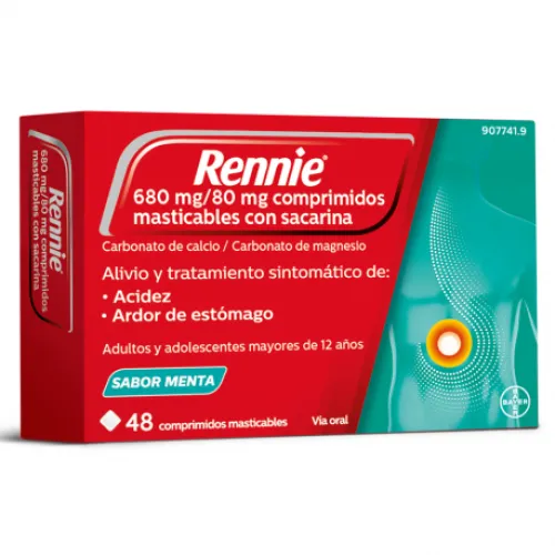 Los comprimidos de Rennie deben masticarse o dejarse disolver lentamente en la boca. No deben tragarse enteros.