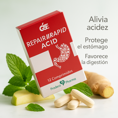 Repair Rapid Acid crea una barrera filmógena protectora, baja la inflamación de la mucosa, mejora su funcionalidad reparándola, restablece la secreción ácida normal y se reequilibran todos los mecanismos protectores fisiológicos.
